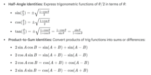 - Using Identities: Convert expressions to a single trigonometric function or a common angle.