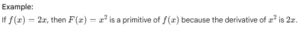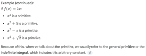 So, when someone talks about finding the “primitive” of a function, they are asking you to perform the operation of integration to find a function whose derivative is the given function.